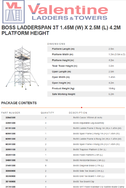 BoSS Ladderspan 3T 1.45m (W) X 2.5m (L) 4.2m Platform Height