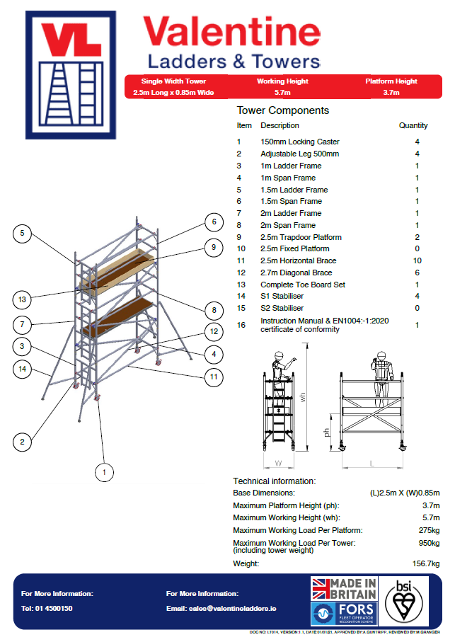 UTS 700 FOLD OUT ACCESS TOWER 1.8M PLATFORM HEIGHT