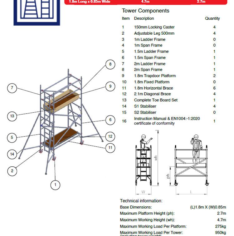 UTS 500 Ladderspan 3T 0.85m (W) x 1.8m (L) 2.2m Platform Height