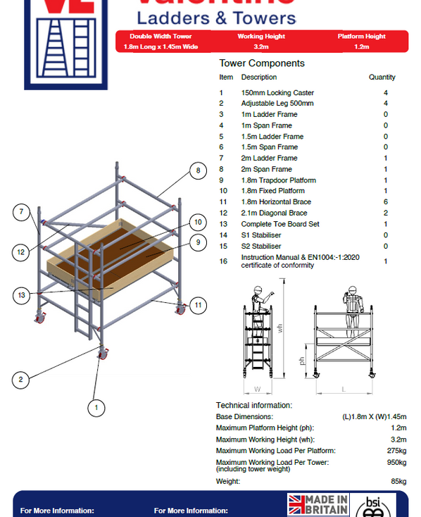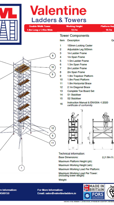 UTS 500 LADDERSPAN 3T 1.45M (W) X 1.8M (L) 11.2M PLATFORM HEIGHT