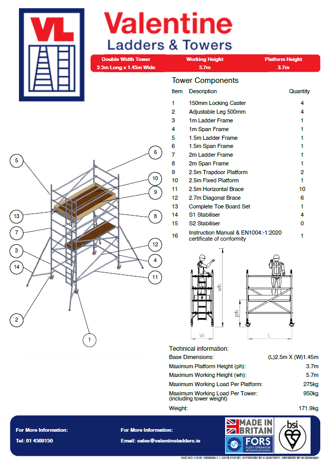 UTS 500 LADDERSPAN 3T 1.45M (W) X 1.8M (L) 5.7M PLATFORM HEIGHT